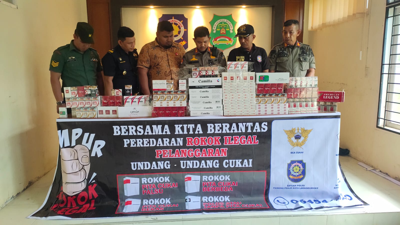 Ratusan Ribu Batang Rokok Ilegal Diamankan di Lhokseumawe